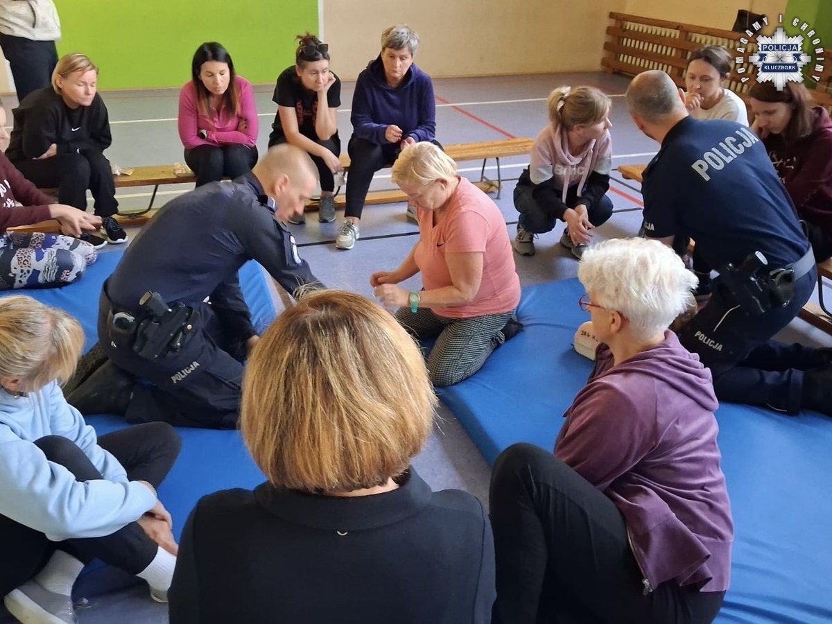 Funkcjonariusze Komendy Powiatowej Policji w Kluczborku wzięli udział w zajęciach samoobrony, podczas których przeprowadzili szkolenie z zakresu udzielania pierwszej pomocy. Spotkanie skierowane było do kobiet, które chciały poszerzyć swoją wiedzę i zdobyć praktyczne umiejętności reagowania w sytuacjach zagrożenia życia.