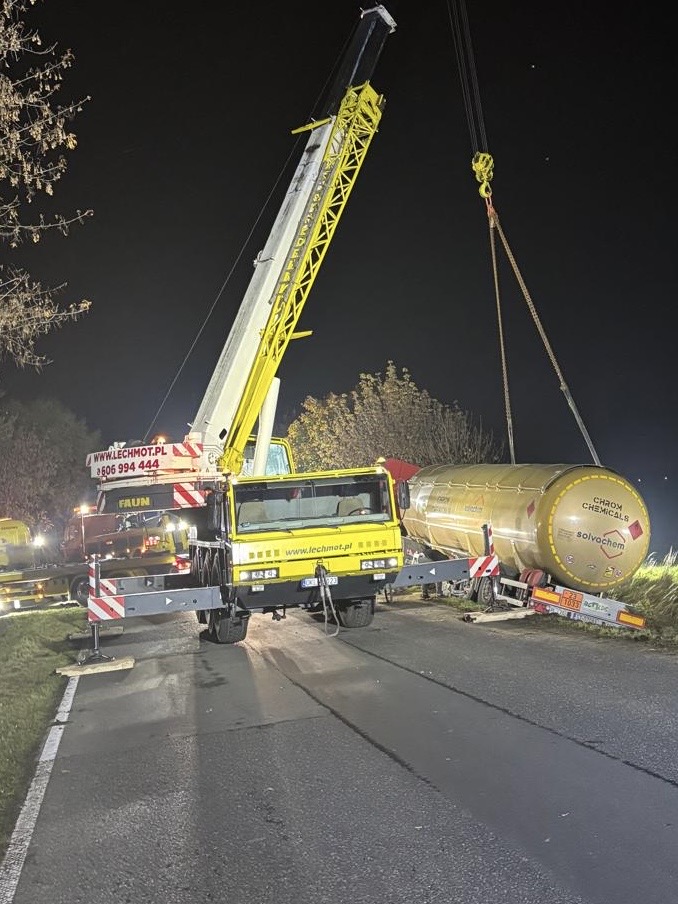 Na miejscu ponad 8 godzin pracowały służby ratunkowe – działania prowadziła Straż Pożarna, a policjanci zabezpieczali teren zdarzenia oraz wyznaczyli objazdy. Droga była całkowicie zablokowana do czasu zakończenia czynności i postawienia pojazdu na koła. Ruch przywrócono o godzinie 21.25.