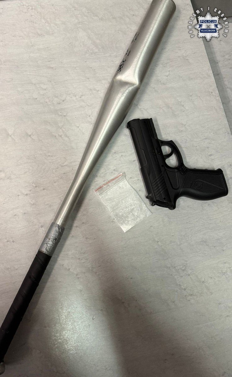 Dalsze czynności przeprowadzone w pojeździe doprowadziły do znalezienia atrapy broni oraz kija baseballowego. Mężczyzna został zatrzymany, a następnie przewieziony na badania i pobranie krwi. Policjanci zatrzymali również jego prawo jazdy. Łącznie zabezpieczono u mężczyzny 15 porcji amfetaminy, które trafiły do badań laboratoryjnych. Zatrzymany odpowie za posiadanie narkotyków oraz kierowanie pojazdem pod wpływem substancji psychotropowych, za co grozi mu kara do 3 lat pozbawienia wolności, zakaz prowadzenia pojazdów i wysoka grzywna.