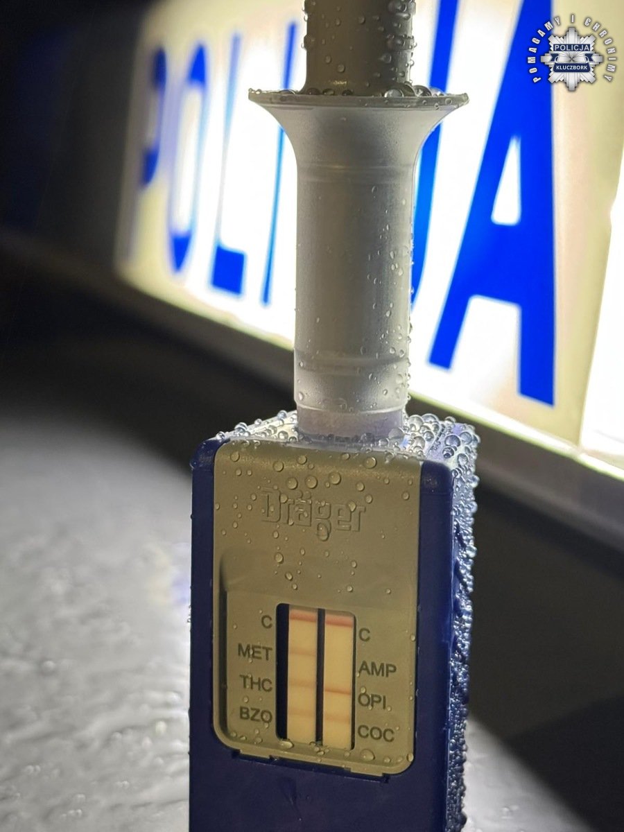 W sobotnie popołudnie policjanci z ogniwa patrolowo-interwencyjnego kluczborskiej komendy otrzymali zgłoszenie o kierowcy, który może znajdować się w stanie nietrzeźwości w miejscowości Bąków przy przejeździe kolejowym. Po dojechaniu na miejsce zastali 38-letniego kierowcę opla, który w trakcie zawracania uderzył w drzewo, a świadek tego zdarzenia opuścił rogatki, uniemożliwiając ucieczkę kierowcy. Mężczyznę poddano badaniu alkomatem, które nie potwierdziło jednak obecności alkoholu w organizmie. Z uwagi na dziwne zachowanie kierowcy policjanci wykonali test na obecność narkotyków w organizmie. Narkotester wykazał, że 38-letni mieszkaniec powiatu znajduje się pod wpływem amfetaminy. Podczas kontroli osobistej funkcjonariusze znaleźli w jego marynarce woreczek strunowy z białą, sypką substancją. Wstępne badania potwierdziły, że jest to amfetamina. Mężczyzna oświadczył, że znajduje się w trudnej sytuacji związanej z rozstaniem z partnerką.
