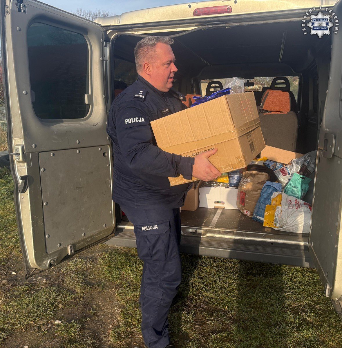 Z inicjatywy funkcjonariuszy Komendy Powiatowej Policji w Kluczborku zorganizowano akcję charytatywną na rzecz schroniska Oczami Zwierząt w Bogdańczowicach. To właśnie to miejsce zostało wybrane nieprzypadkowo – jedna z naszych funkcjonariuszek od lat działa tam jako wolontariuszka, doskonale znając codzienne potrzeby i wyzwania, z jakimi mierzy się schronisko. Wczoraj zebrane dary zostały oficjalnie przekazane do schroniska. Uczynił to osobiście Komendant Powiatowy Policji w Kluczborku młodszy inspektor Andrzej Ostrycharczyk. Nad rozładunkiem czuwał wyjątkowy gospodarz – prześliczny pies Atos, jeden z podopiecznych schroniska, który wciąż czeka na swój wymarzony dom. Mamy ogromną nadzieję, że zbliżające się święta będą dla niego początkiem nowego, lepszego życia u boku kochającej rodziny.