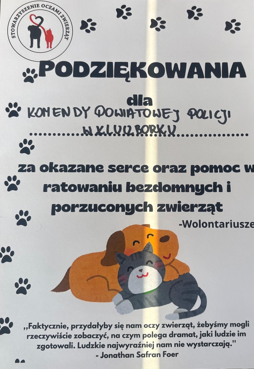 Policyjna pomoc z sercem – funkcjonariusze wsparli schronisko Oczami Zwierząt w Bogdańczowicach