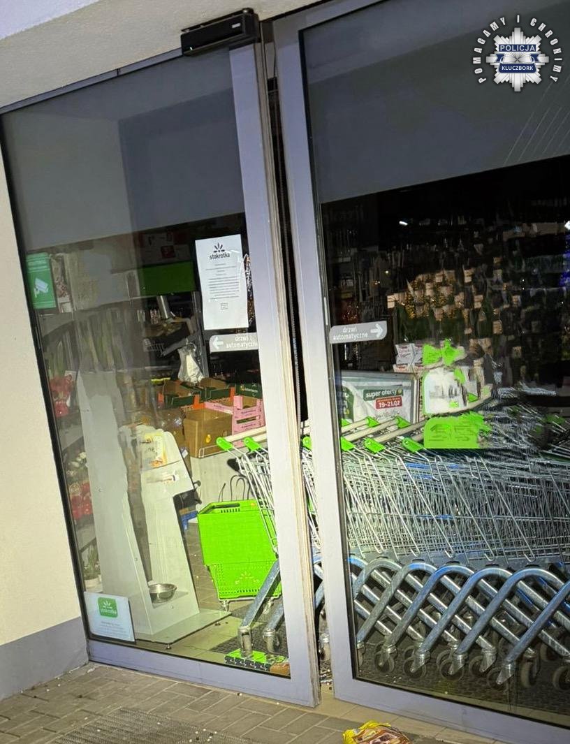 Do zdarzenia doszło w godzinach nocnych, kiedy do oficera dyżurnego wpłynęło zgłoszenie na numer alarmowy od przechodzących mężczyzn. Zgłaszający zauważyli, jak nieznany im mężczyzna kopie w drzwi sklepu, a następnie wynosi z jego wnętrza różnego rodzaju towary.